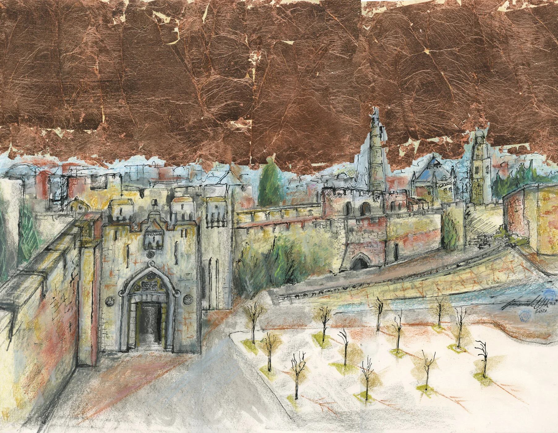 Mixed media: Arches Paper / Oil Pastel / Chinese Ink / Copper Leaf